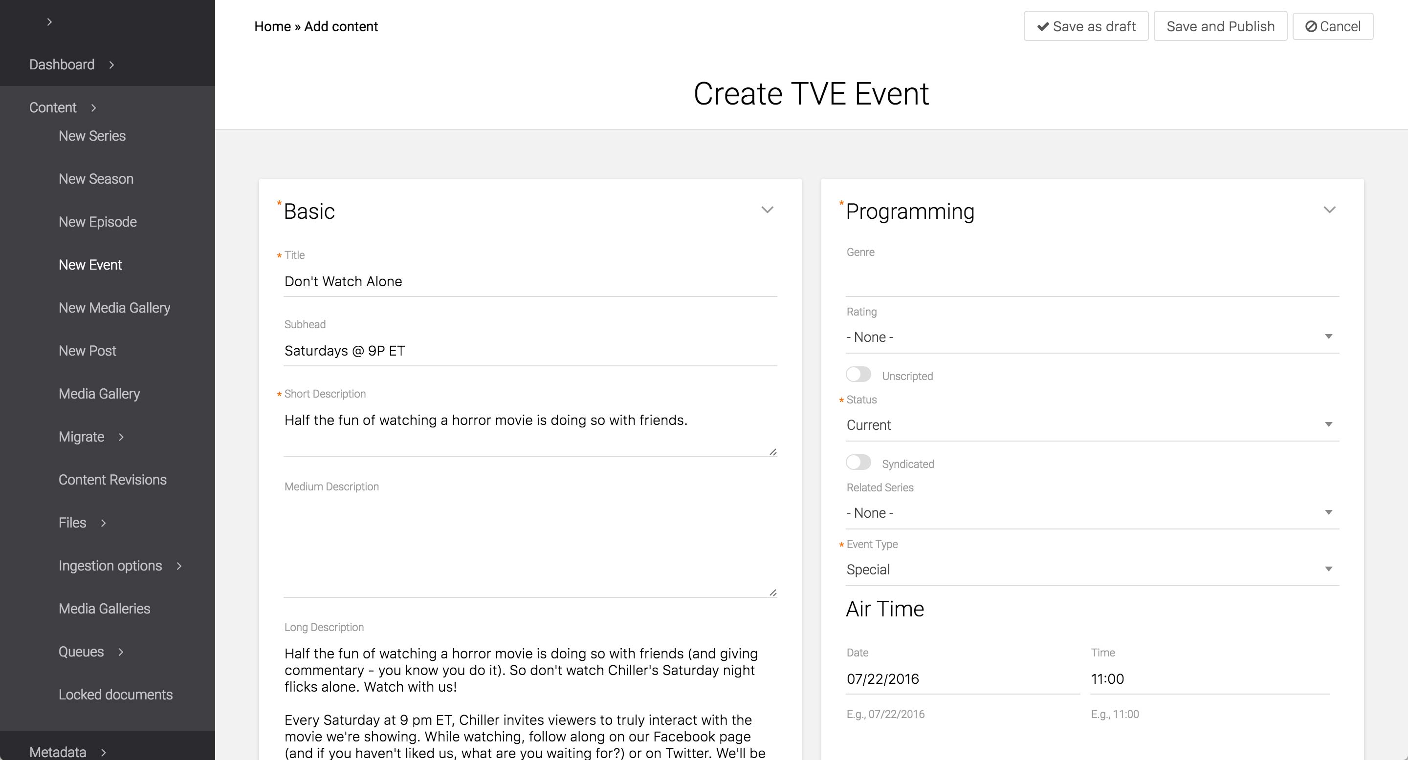 After you’re done, click on Save as draft or Save and Publish.